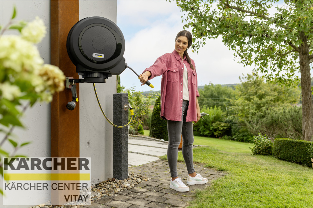 HBX 5.25 Automata tömlőtartó kényelmes és rugalmas öntözést garantál, 25 m-es tömlővel és automatikus tömlőbehúzással.