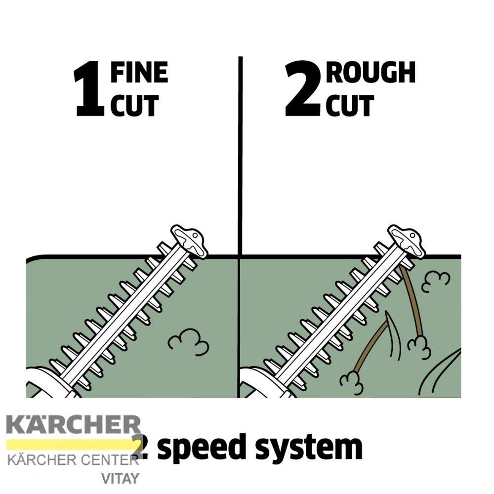 Idális precíz kontúrvágásokra 2.szint: nagy teljesítmény. Ideális a vastagabb ágak és sűrű sövények vágására.