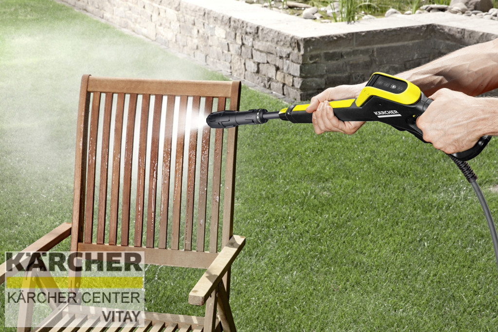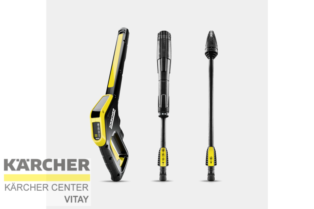 Szórópisztoly LCD kijelzővel és gombokkal felszerelve a nyomásszabályozáshoz vagy a tisztítószerek adagolásához.