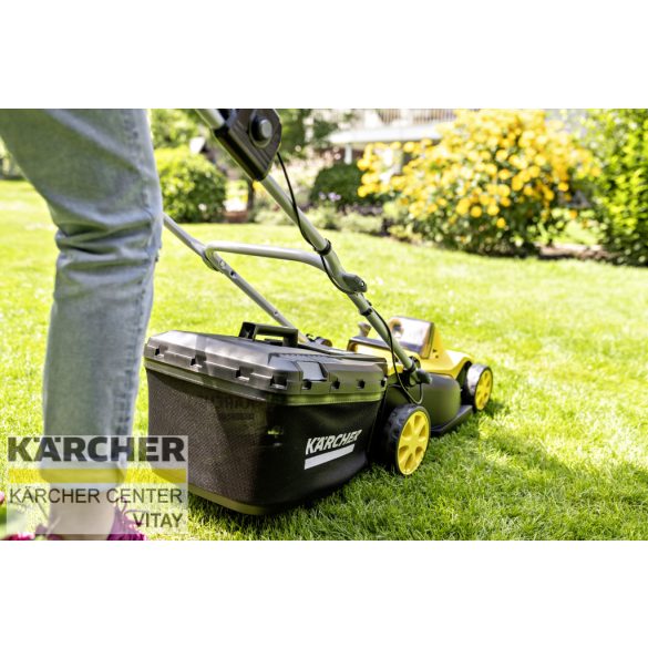 A munkaszélesség 34 centiméter. A vágási magasság igény szerint könnyen beállítható az öt fokozat egyikére, 25 és 65 milliméter között. Az iPower funkció intelligens motorvezérlésének köszönhetően a sebesség a fűnyírás során automatikusan a fű állapotához igazodik. Ha széleket vagy szegélyeket kell nyírni, a fűfésűk kiegyenesítik a fűszálakat a jobb rögzítési arány érdekében. A 2 az 1-ben fűnyíró rendszerrel a fűnyesedék a mulcsozás során természetes trágyaként egyenletesen eloszlik a gyepen vagy a 35 literes fűgyűjtő tartályban összegyűjthető - a hosszabb non-stop fűnyírás érdekében. A kényelmes munkapozíció érdekében a vezetőkar magassága állítható. Összecsukott állapotban a keret kevesebb helyet foglal a tárolás során. A lépcsőkön való könnyed fel- és átcipeléshez integrált szállítási fogantyúkkal rendelkezik. Kompatibilis a 18 V-os Kärcher Battery Power akkumulátorplatform összes cserélhető akkumulátorával.