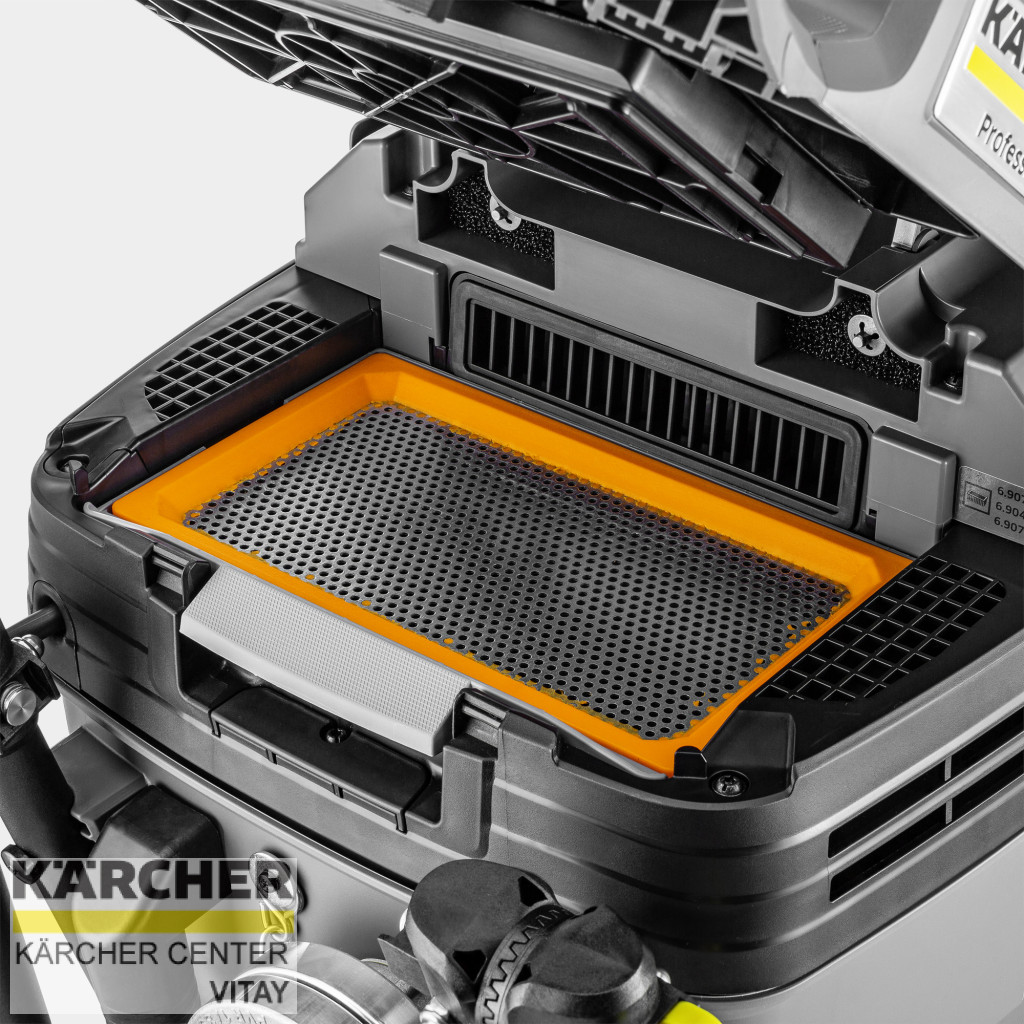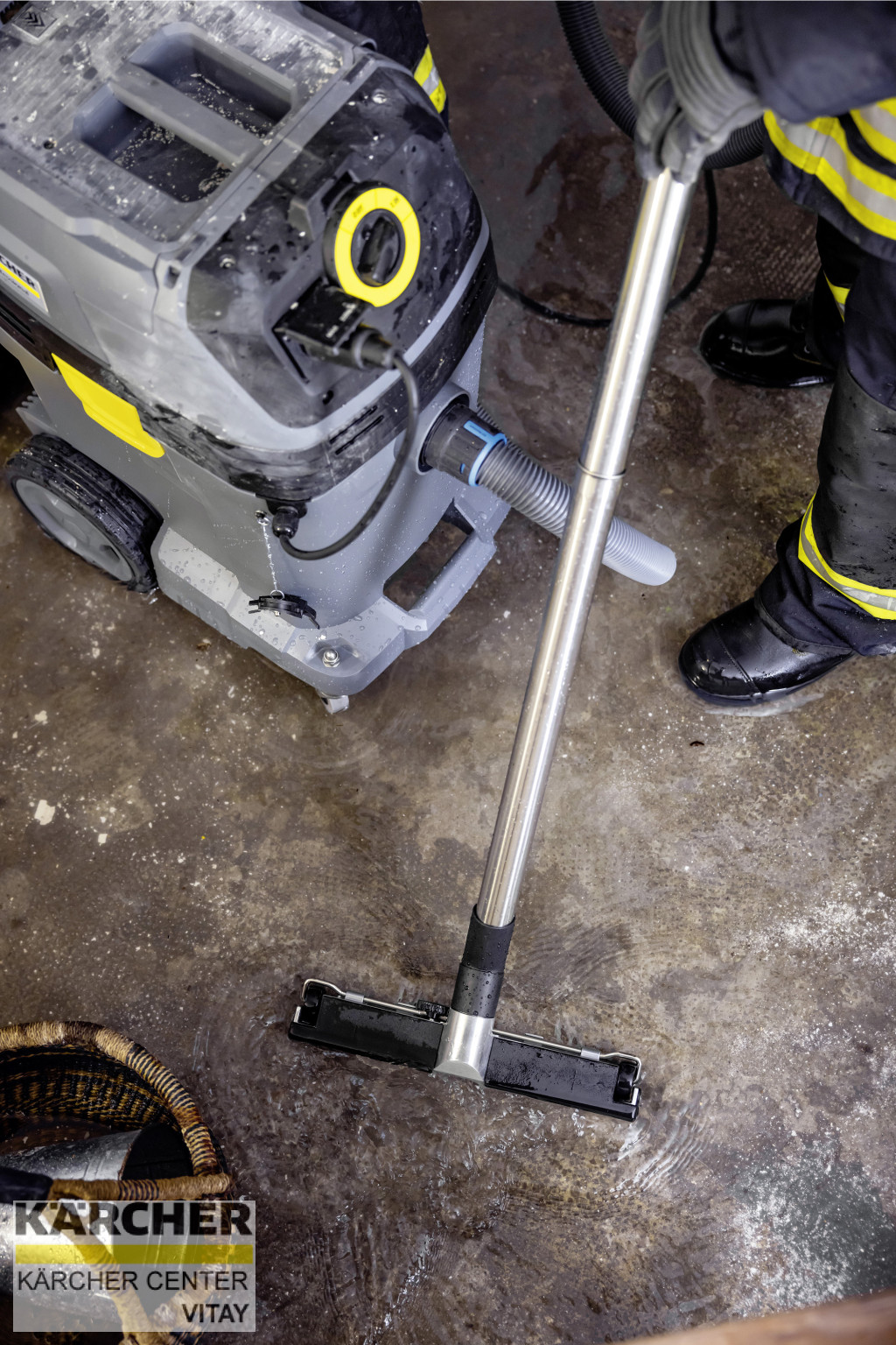 Rendkívül erős, robusztus és könnyedén szállítható: A Kärcher NT 50/1 Mwf nedves és száraz porszívója megfelel a tűzoltósági műveletek legmagasabb követelményeinek is. Az 50 literes tartállyal, fém kormánygörgőkkel/görgőkkel és fokozatmentesen állítható tolófogantyúval felszerelt mobil gép gyorsan a helyszínre ér, ahol az összes szokásos tűzoltótömlő csatlakoztatására szolgáló C-csatlakozónak köszönhetően azonnal használatra kész. A szennyvízszivattyú percenként akár 330 liter vizet is szivattyúz - ideális nagy vízmennyiségek gyors eltávolításához, mint például a tűzoltási munkálatok vagy árvízi műveletek során. A kifejezetten áramfejlesztőkhöz tervezett, IP68-as dugóval ellátott PRCD-K személyvédelmi kapcsoló, valamint a durva szennyeződések szűrőkosara, amely hatékonyan védi a szennyvízszivattyút a felszívott kövek, levelek vagy fa által okozott dugulásoktól, biztosítja minden érintett és a gép biztonságát. Az NT 50/1 Mwf tűzoltó porszívó emellett olajálló szívótömlővel és kiváló minőségű alumínium padlófúvókával van felszerelve.