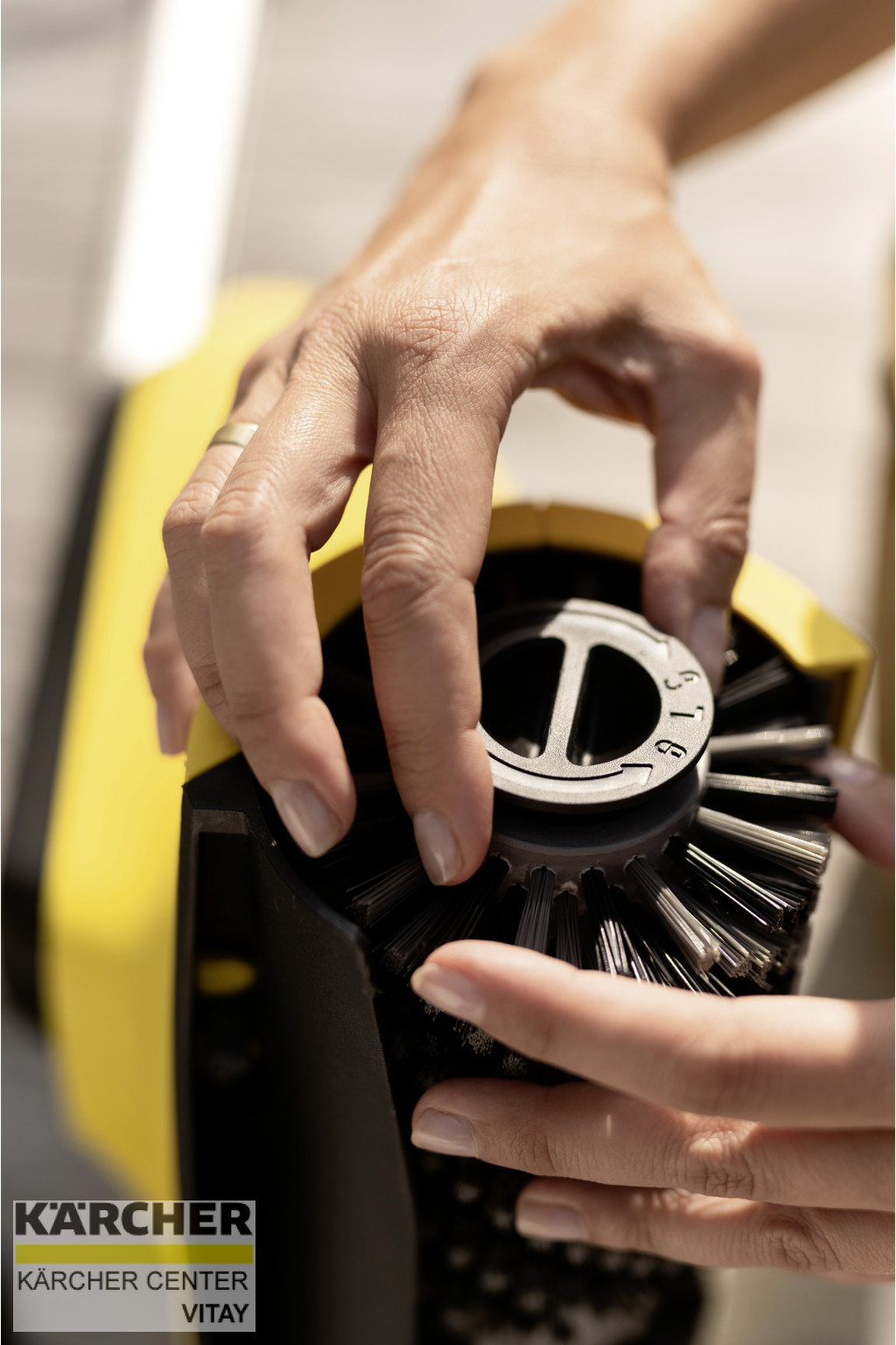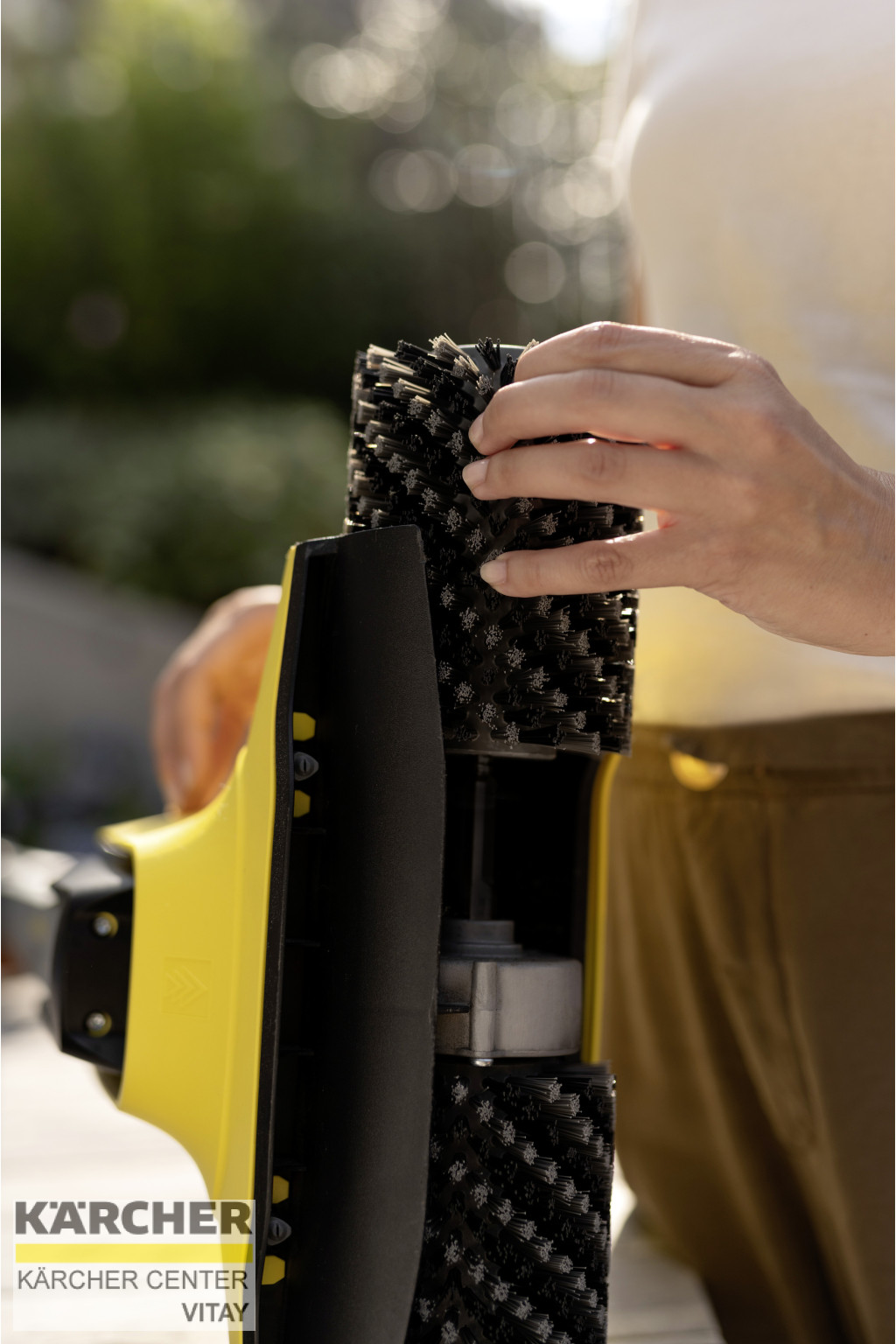A két fúvóka a gördülőkefék felett lehetővé teszi hogy a makacs szennyeződések eltávolítása és az öblítés egyszerre történjen.