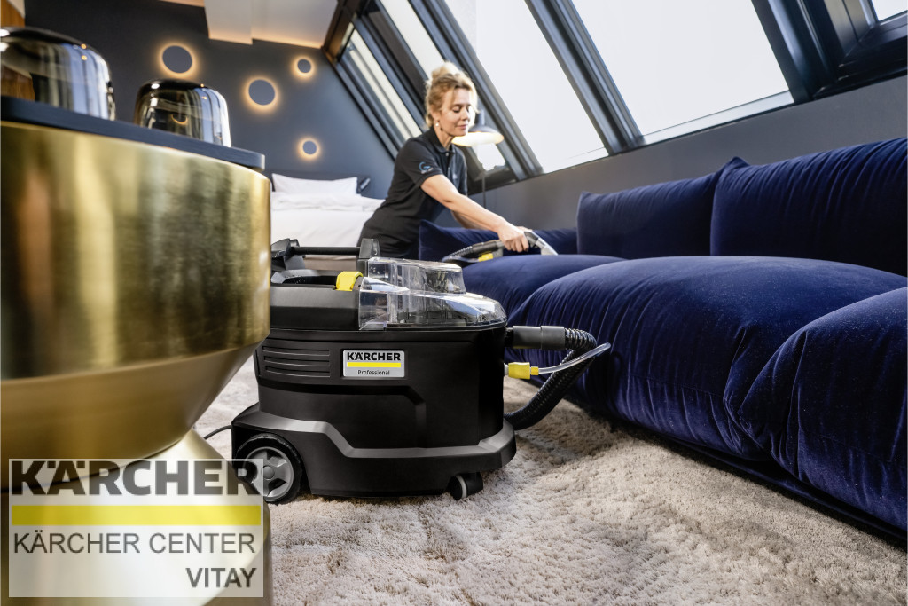 A KÄRCHER Puzzi 8/1 Go!Further egy kompakt, mégis nagy teljesítményű szőnyeg- és kárpittisztító gép, amelyet professzionális felhasználásra terveztek. Ideális választás szállodákba, irodákba, autókozmetikákba, takarítócégeknek és minden olyan környezetbe, ahol fontos a gyors, higiénikus és mélytisztítás.
