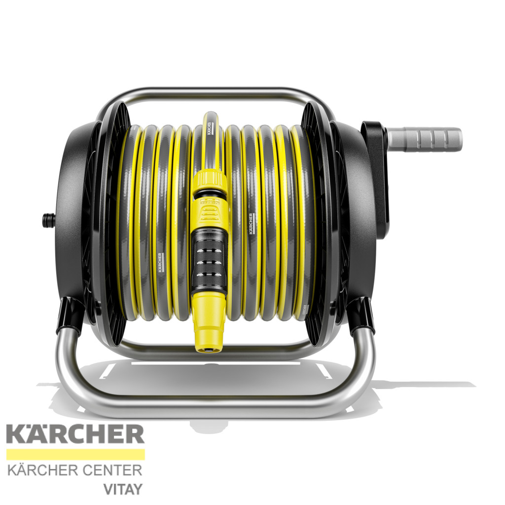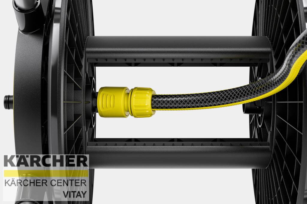 Komplett készlet a kényelmes öntözéshez és a helytakarékos tömlőtároláshoz. Azonnali használatra kész egy 10 m-es Kärcher kerti tömlővel, csatlakozókkal, csap adapterrel és fúvókával.