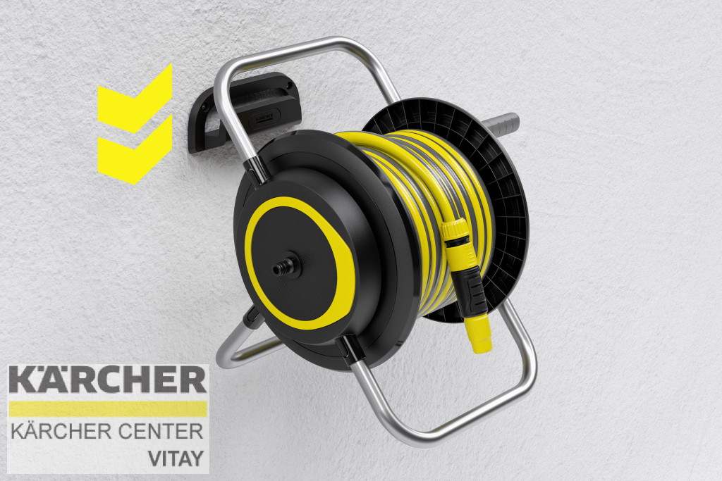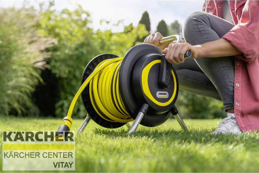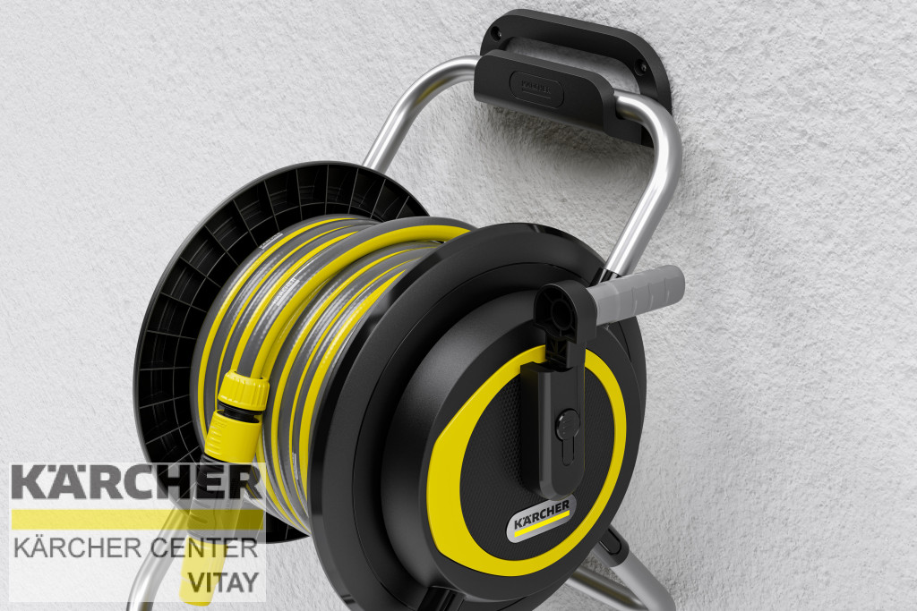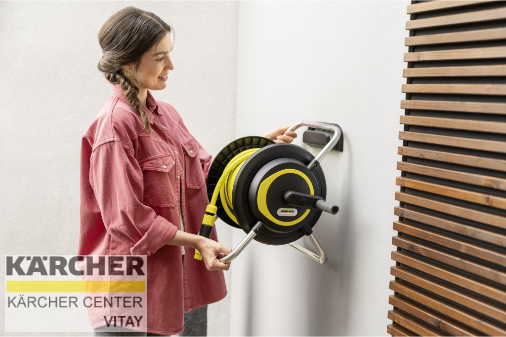 A HR 3.20 készlet 20 m-es tömlővel és tartozékokkal a tömlő falon való tárolására és a kertben való mobil használatára egyaránt használható.
