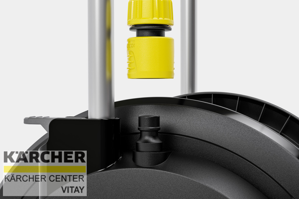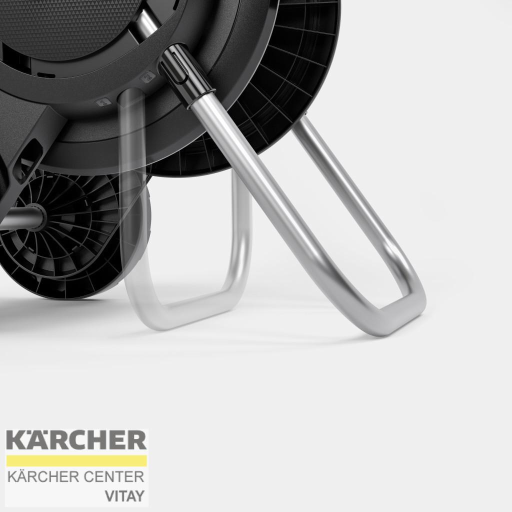 A mobil és stabil tömlőkocsi rendkívül széles talppal a maximális stabilitás érdekében. Kompakt modell állítható magasságú fogantyúval kis kertekhez.