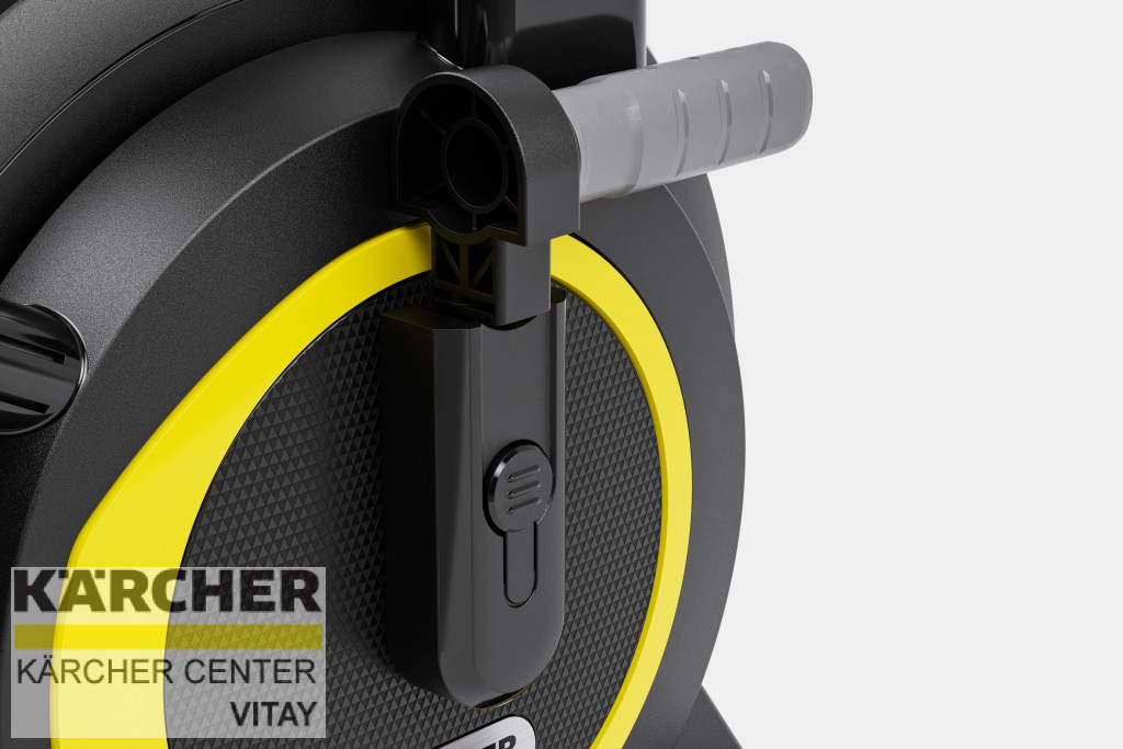 A tömlőkocsi robusztus tömlődobjával, a maximális stabilitást biztosító extra széles alappal, precíz tömlővezetővel és állítható magasságú fogantyújával rendelkezik.